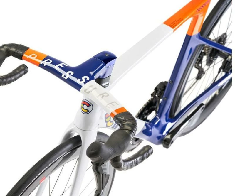 The new born Cinelli aerodynamic racing frame integrates anything possible: the special aero seat tube, the custom colour FSA Vision Metron 5D ACR fully integrated aero handlebar, with integrated headset, cockpit and fork, for the cleanest cable routing solution and fastest racing geometry ever.