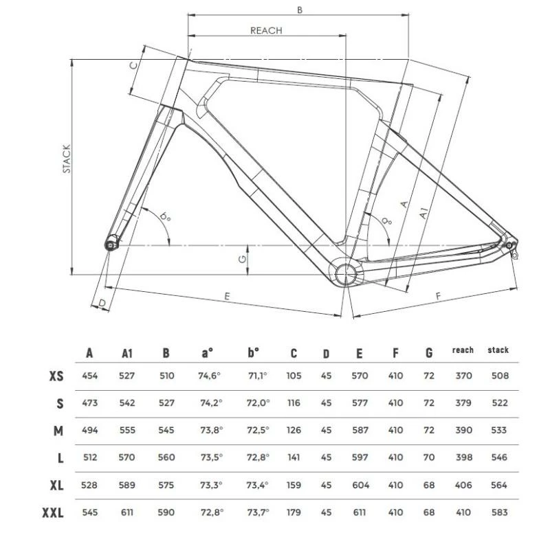 Frame designed to guarantee the same stiffness and driveability on each of the six available sizes