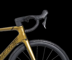 The fork of the C64 has been completely redesigned, with an outer rib that gives the athlete more comfort but also increases the driving qualities (lateral stiffness). To increase stiffness and strength, a special rib was created inside the steering tube, co-laminated with a threaded aluminum insert that actually replaces the traditional expander. The C64 disc fork is made with a special C / D shape to allow the complete passage of the hydraulic pipes inside the stem, for a total cleaning of the lines. The front through pin, also 12 mm as for the C60 disc, is now a hexagonal threaded type, for the maximum weight reduction of the system. Weighing just 355 g, with the same shape as the disc version, the traditional brake fork accommodates the pivots for direct-mount brakes, a choice necessary to provide the space required for the use of large tires. The length of the fork has been increased by 5mm, a stratagem that has made it possible to create a hollow fork head, reducing the weight but maintaining the same rigidity and performance of the fork of the C60. The dropouts are now carbon fiber, made with a process similar to metal forging.