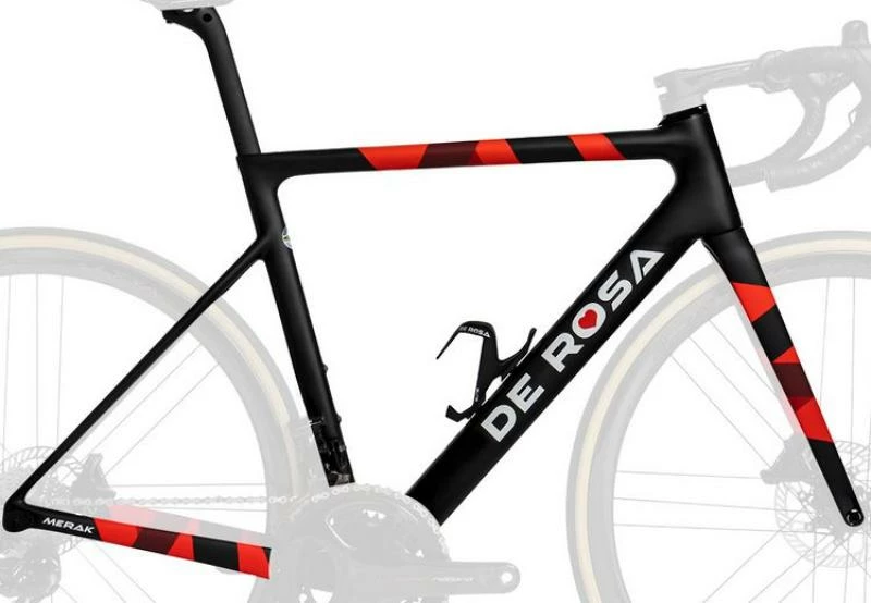 The Merak is our racing bike par excellence, ensuring lightness, responsiveness and an extremely comfortable ride. This racing machine sports an ultralight carbon frame moulded with modern EPS technology, fully integrated cable routing for a clean look and an even more accurate ride. Merak is our bike, designed and developed to go fast on climbs, on the flats, on downhill rides, in Granfondo as well as in the most demanding stages of the World Tour by Team Cofidis. Merak 2022 Disc is the highest technology expression of De Rosa. Twenty years after the triumph of Plouay, De Rosa’s Merak is still fighting with the knife between its teeth to take every road inch from its rivals.