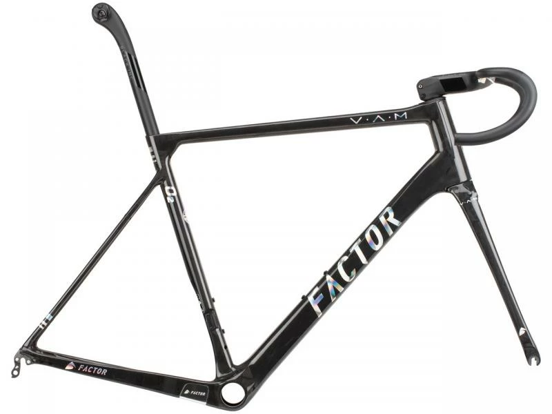 rnThe Factor O2 VAM represents 3 years of feedback, data, innovation, and design from Factor’s O2 Project, culminating in a frameset that optimizes the original O2 in almost every area. Lighter, stiffer, better integration, greater tire clearance, the Factor O2 VAM rewrites the rules of ultralight bikes with unparalleled ride quality in a featherlight package.rnrnThe frameset comes with:rn-Framern-Forkrn-Integrated handlebar Black inc.rn-Seatpostrn