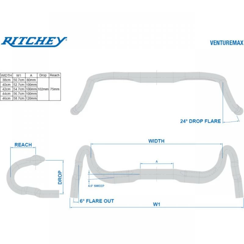 The WCS Venturemax from Ritchey with a 31.8 mm stem clamp is an ergonomic gravel handlebar for long days in the saddle. Thanks to the ergonomic bio-bend drops, you can change your hand position as needed. The flattened upper link prevents uncomfortable pressure points in the ball of the hand.