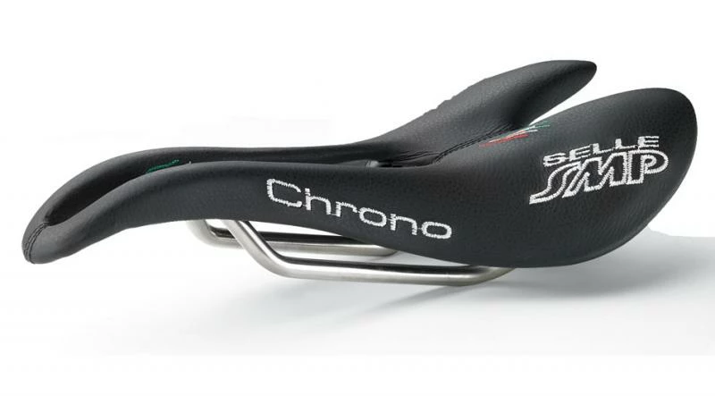 Chrono, the seat also ideal for junior racers. It is covered in real leather in the black versions and Lorica microfiber in the colored versions. This model does not have padding. The patented features by Selle SMP, such as the completely free central channel, the original eagle-beak nose and the raised rear give these models an interesting aerodynamic touch. Suited for thin people with narrow pelvises and junior.