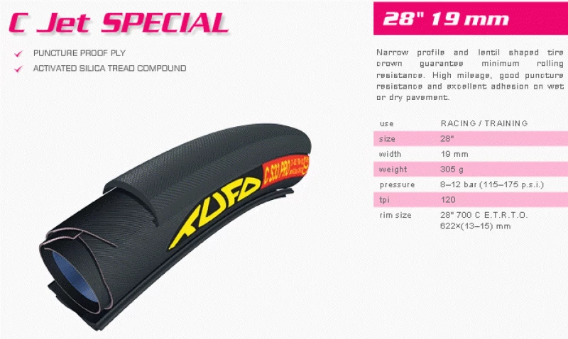Narrow profile and lentil shaped tire crown guarantee minimum rolling resistance. High mileage, good puncture resistance and excellent adhesion on wet or dry pavement.